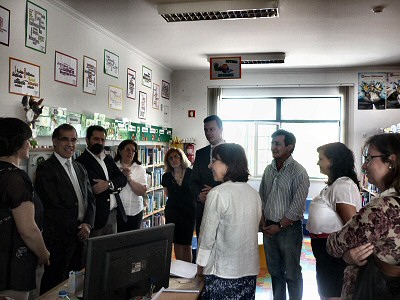 Esta visita teve como objetivo dar a conhecer o funcionamento das bibliotecas do 1º Ciclo, nomeadamente no que concerne aos projetos nelas desenvolvidos e às dinâmicas de apoio ao currículo e ao desenvolvimento das literacias junto dos vários estabelecimentos de ensino do Agrupamento, assim como na utilização do espaço da biblioteca pelos docentes em contexto de aula, pelos alunos durante os seus tempos livres e pelas famílias nos dias de abertura à comunidade. Paralelamente foram também dadas a conhecer algumas das dificuldades com que estas bibliotecas, pelas suas caraterísticas específicas, mais se debatem. Durante a visita, o Sr. Secretário de Estado pode observar os alunos da Unidade de Ensino Estruturado numa atividade do projeto “Bibliotec@ndo no T@blet”, constatando a autonomia e concentração que estas crianças revelam no uso do equipamento e no domínio das aplicações, neste caso, de apoio ao ensino da matemática. Foi para nós uma honra receber o Sr. Secretário de Estado no nosso espaço, entendendo este convite como o reconhecimento de todo o trabalho que vem sendo feito por toda a nossa Comunidade Educativa em prol da leitura e das literacias em articulação com a Biblioteca Escolar. Esperamos que também tenha sido do agrado do Dr. Fernando Egídio dos Reis a mensagem e a imagem que lhe transmitimos desse mesmo trabalho.