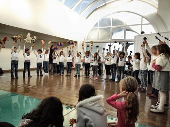A convite da organização do 12º Encontro Eterna Biblioteca que decorre anualmente em Sintra, estes pequenos leitores mostraram-se bem à altura do evento e, acompanhados de um “Zé” que gostava muito de bichos de todos os tamanhos, de uma “Mãe” que não achava graça nenhuma aos gostos do filho e muitos, muitos bichos, encheram a Sala da Clarabóia do MUSA de alegria e cor. Para esta apresentação contámos com a ajuda preciosa do professor de Música da turma, Fábio Esteves que escreveu e ensaiou a canção final e ainda das mães e pais que, com muita dedicação e carinho ajudaram a criar estes fabulosos animais e acompanharam os seus educandos neste evento. Um especial obrigado à professora Filipa Silva pela sua disponibilidade.