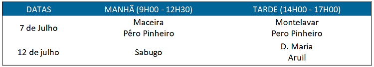 No dia 13, o horário será das 9.00 às 12.45 e no dia 14, das