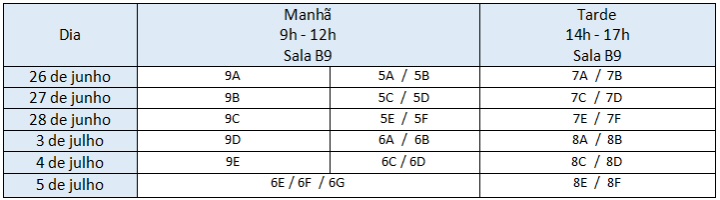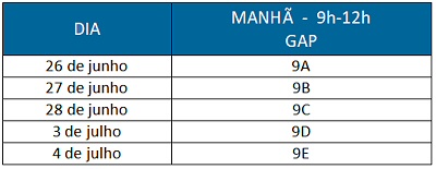 9.00 às 11.45. Nestes dias ocorrerá a divulgação e participação